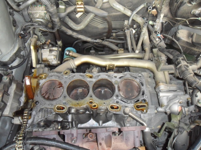 * 4번 실린더 배기밸브 열변형으로 밸브밀착 불량 발생 * 실린더 헤드 장착중